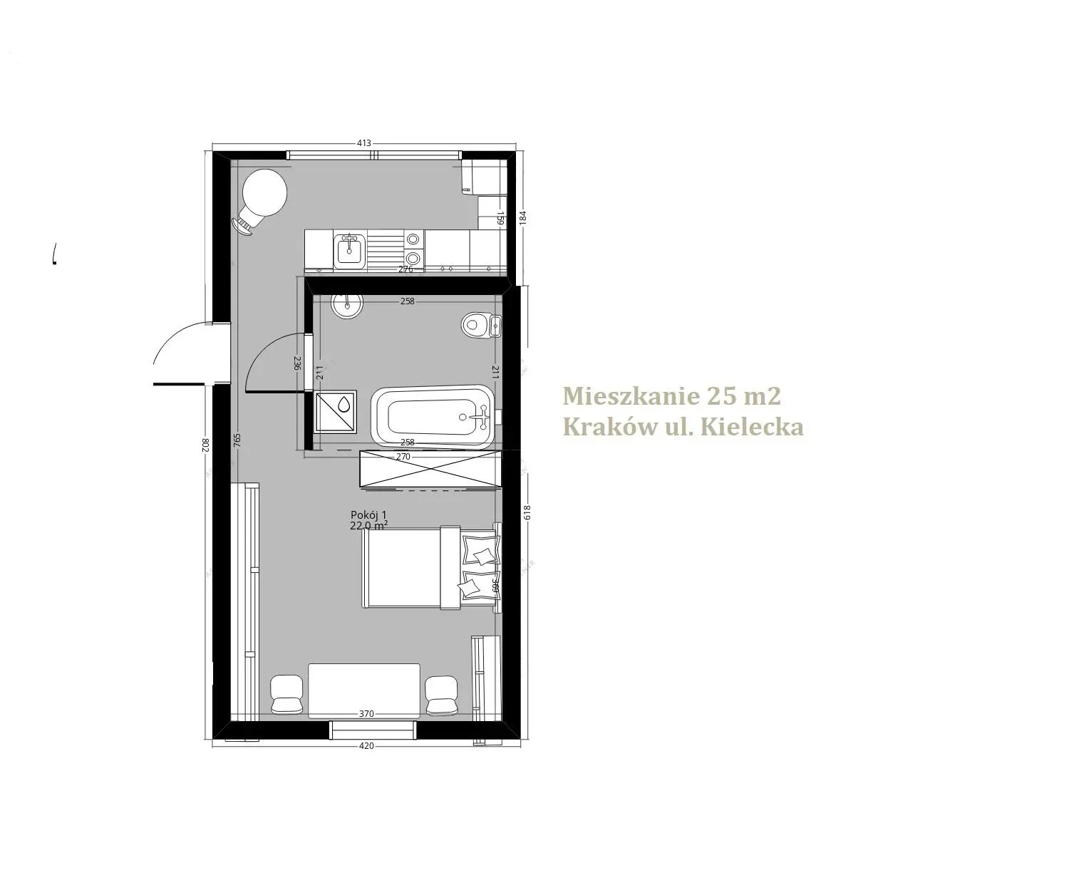 Mieszkanie usytuowane jest na 4 piętrze w zadbanym budynku, Całkowita przestrzeń mieszkania stanowi 25 m2, a na jego powierzchnię składa się osobna kuchnia, łazienka oraz pokój dzienny.
