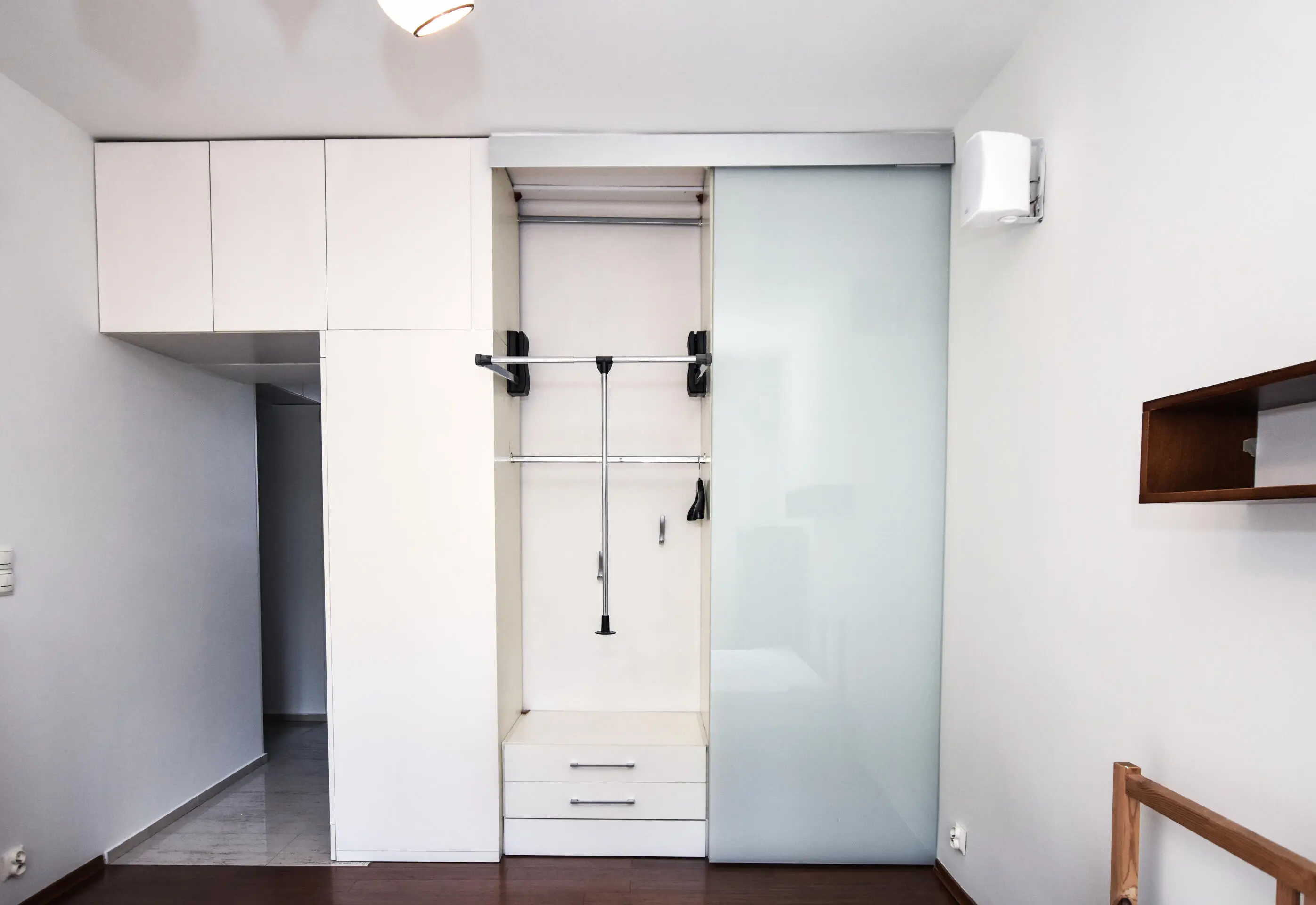 Wysokość oraz mądra aranżacja mieszkanie stwarza bardzo dobre warunki przestrzenne do mieszkania oraz do przechowywania.